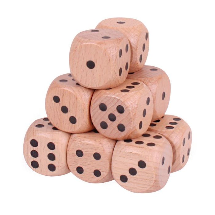 Chunky wooden dice with clearly marked black dots. Perfectly sized for little hands, these wooden dice can be used for any number of counting games. 12pk. 3cm2 3yrs+.
