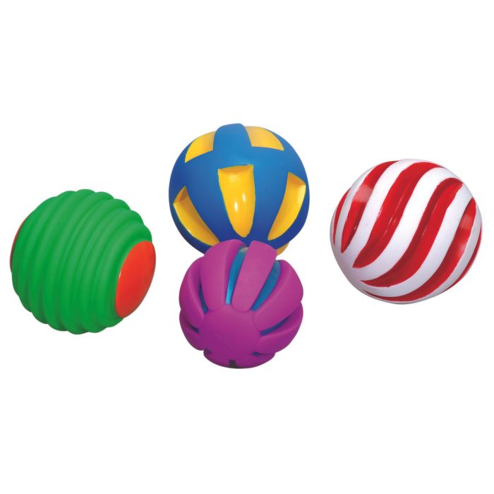 A selection of tactile brightly coloured sensory balls for babies. Great for visual interest and sensory exploration.