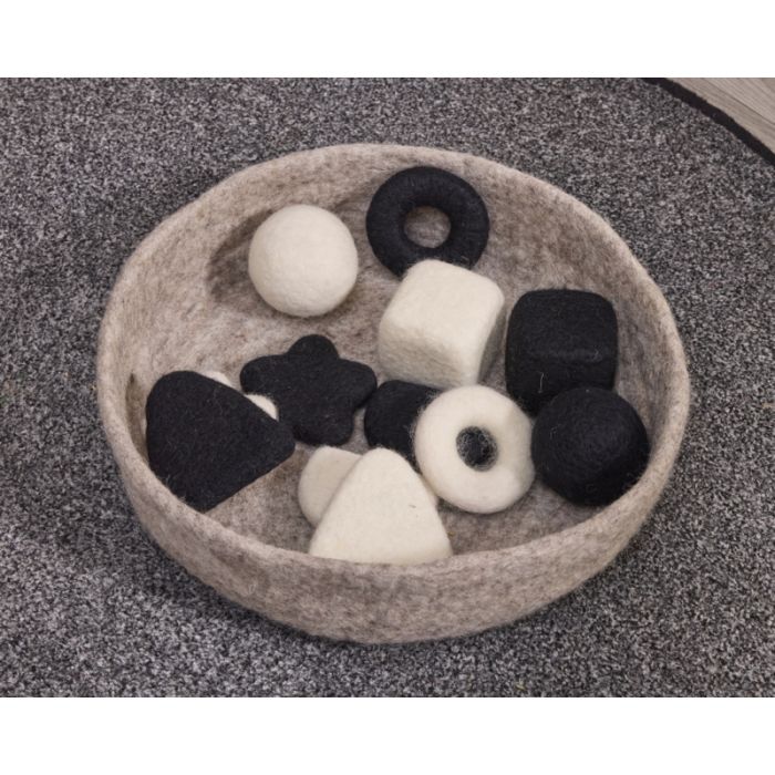 Our Black & White Felt Loose Parts set delivers exactly that, with 12 tactile shapes designed to captivate young eyes and busy hands.