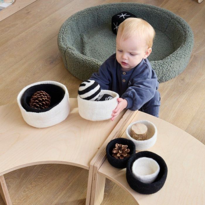 This set includes 7 beautifully crafted felt nesting bowls (4 white and 3 black) that are perfect for a range of activities, from sensory investigation to early maths play.