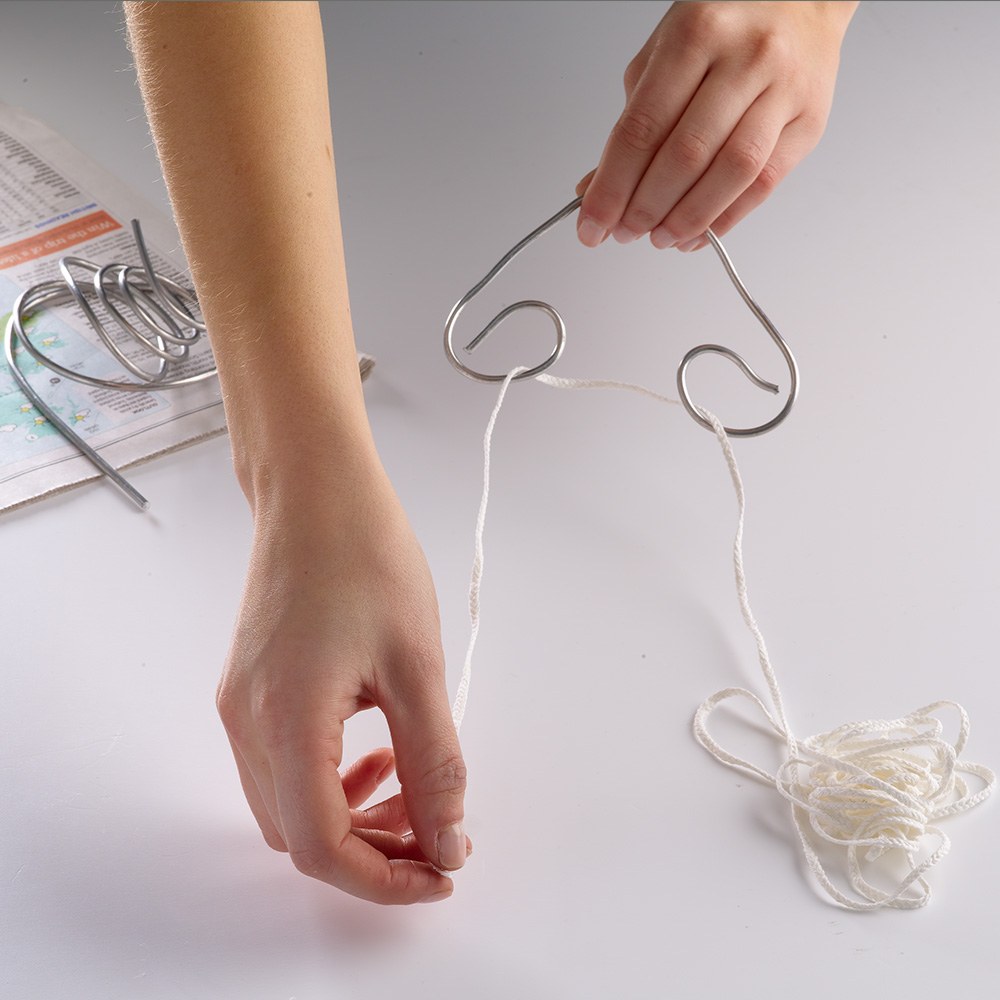 1. Get a piece of soft aluminium wire and bend it to make a hanger for your wick.