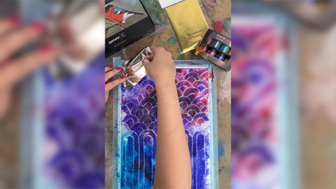 Press the transfer foil onto the dried glue, then dab and pull away quickly.