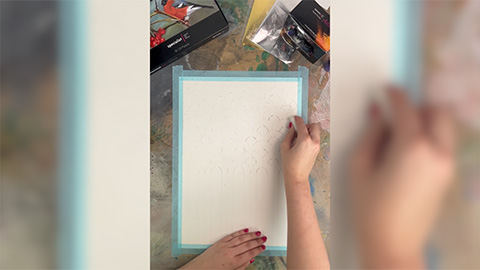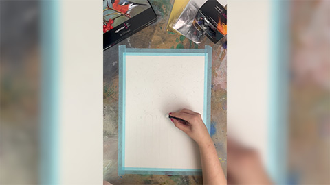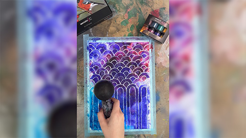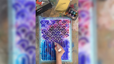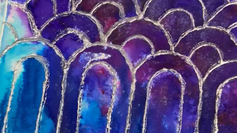 • Oil-based materials repel water-based pigments due to their different chemical properties. This creates a resist that will protect the geometric lines.