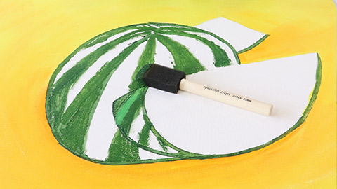 Using another foam brush or hog brush with a lighter green paint, fill in the gaps to create a striped watermelon pattern. You can blend a range of green colours for a realistic effect.