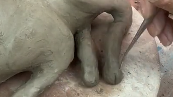 Once the legs are established, sculpt the hooves. Pay attention to their shape and angle so they feel grounded and anatomically correct rather than decorative.