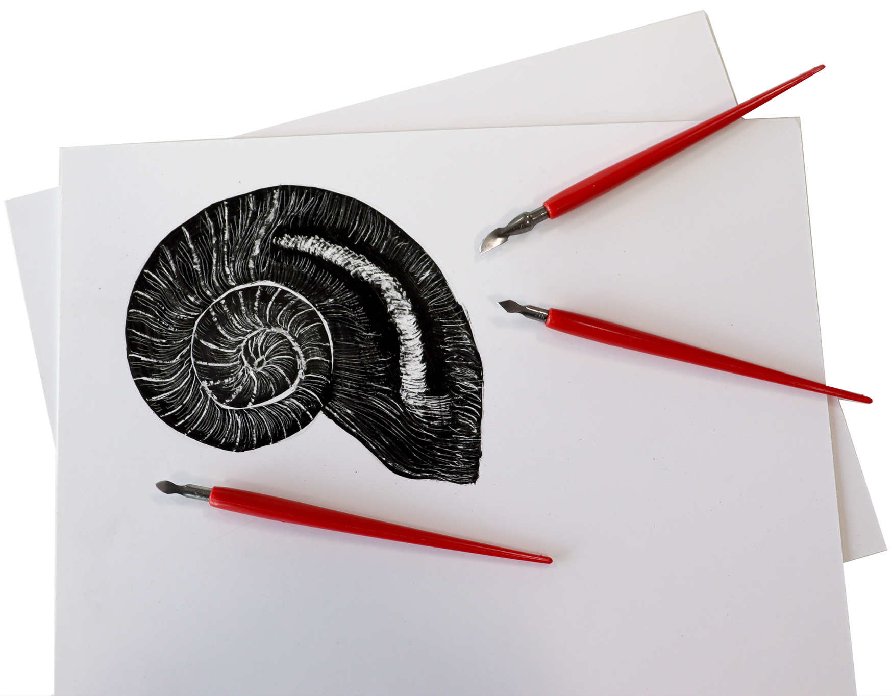 Remember that illustrative work in scraperboard is an experiment with light and shadow.
