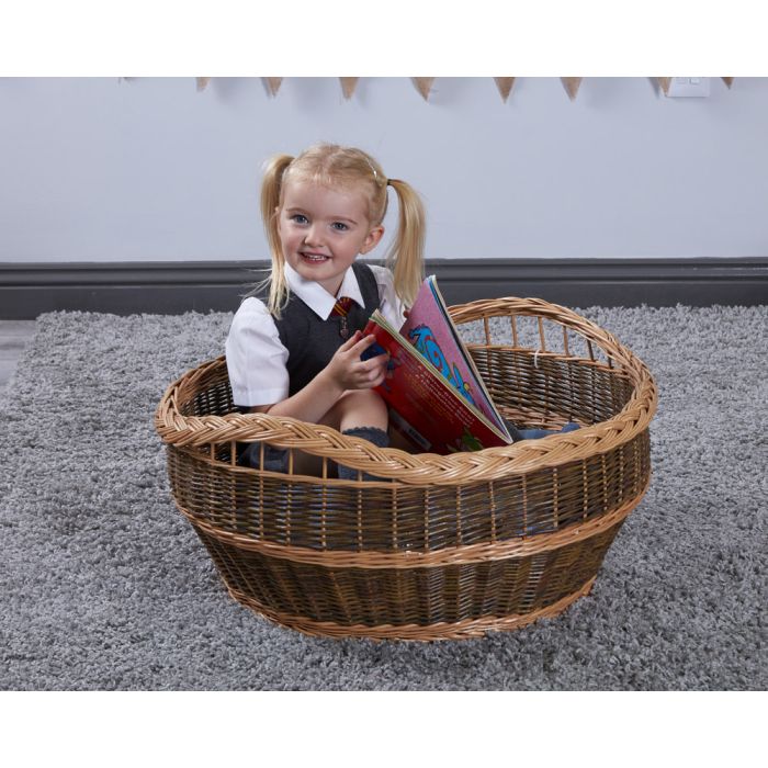 Large Wicker Basket: The basket gives children a space to sit or lie in whilst engaging in creative activities such as reading or pretend play.