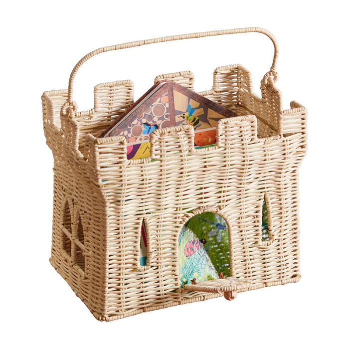 Pack of 1 castle-shaped basket: Includes 1 castle-shaped wicker basket.