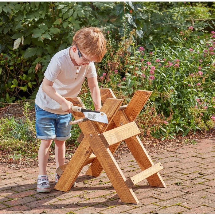 Whether they're slicing through tree branches for a nature-inspired sculpture or cutting softwood offcuts to size for their next grand design, this saw bench makes every project feel achievable.