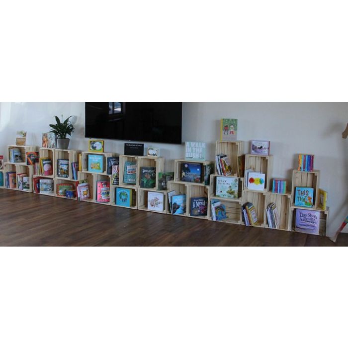 You can customise the space to make it your own by labelling each crate with different book genres, adding a new element to story time by having ‘fantasy' or ‘sci-fi' dedicated book day or letting children decide for themselves.