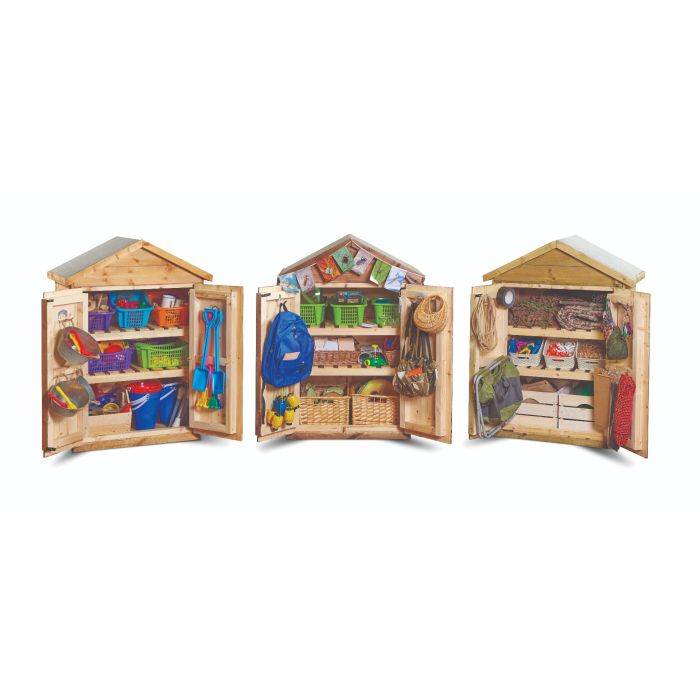 The Columbia Market Outdoor Storage Sheds are ideal for storing everything from sand and water play equipment to gardening tools and outdoor art supplies.