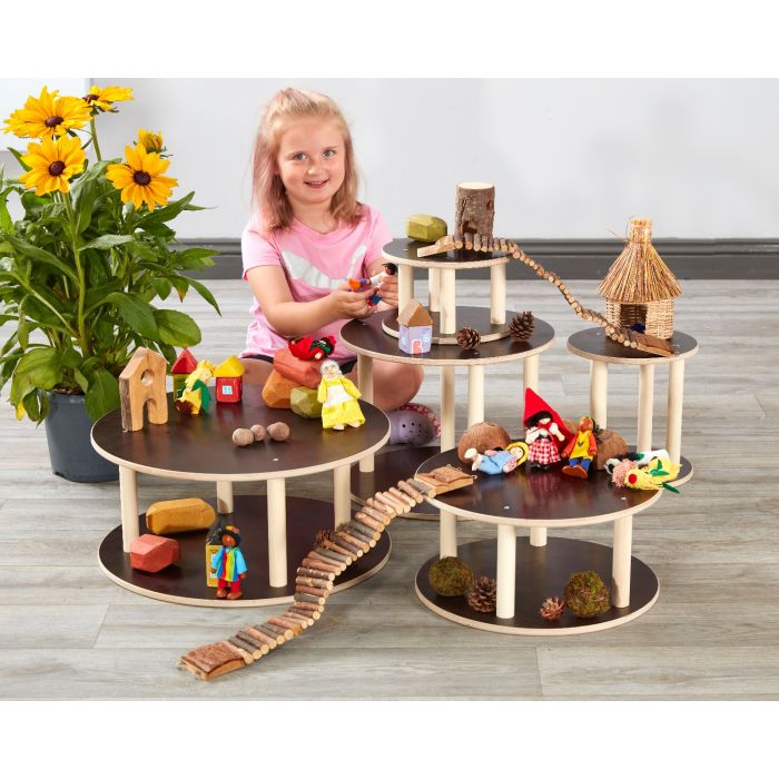These versatile tiered platforms elevate imaginative play with five stackable and spreadable wooden stages, there's no limit to the magical worlds you can create.