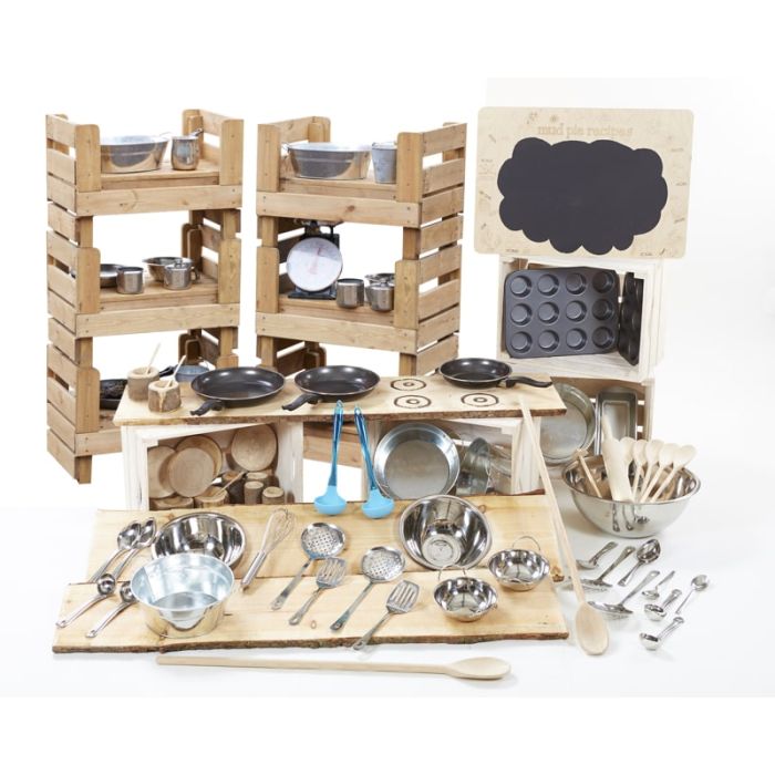 Welcome to the world of messy play, where creativity and chaos go hand in hand! Our Cosy Complete Mud Pie Kit transforms any outdoor play area into a bustling mud kitchen. Perfect for budding chefs, this set includes everything needed to whip up mud pies, soups, and pretend salads. With included handy storage crates to keep everything neat, it’s a fun and organised way to encourage outdoor cooking, imaginative play, and sensory exploration. Ready to get messy? Let the culinary chaos begin!