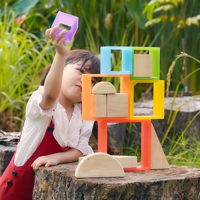 An upgrade from the classic nesting toy the extremely resilient and durable pieces in the Discovery Squares - Rainbow set enhance open-ended play indoors and outdoors. Children ages 2 and up can stack balance create patterns and learn about shapes and colors while experimenting and exploring using this set. A perfect companion to light play activities loose parts play or traditional block play this vibrant toy set bridges the gaps between various play patterns. Combine with other Discovery shapes and stacker sets (sold separately) to expand possible play outcomes.