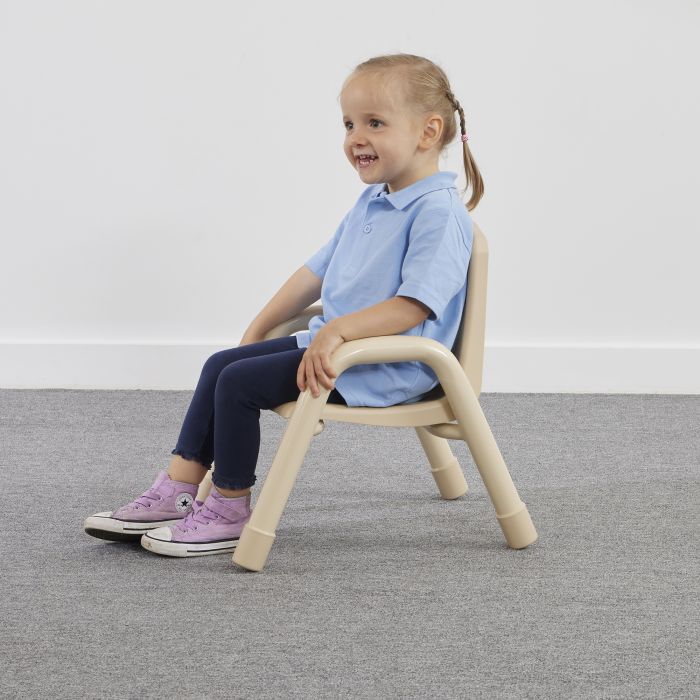 The plastic moulded one-piece ergonomic seat and back are designed for correct seating posture and have plastic feet to prevent slipping and scratching.