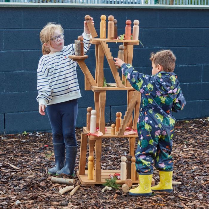 Not only does this structure encourage cooperative play, but it also supports the development of fine motor skills and hand-eye coordination as children carefully place their peg people, characters and props.
