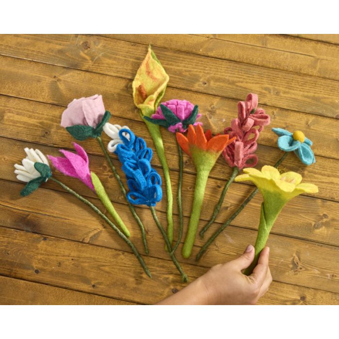 Ten flowers in assorted colours and sizes let children sort, arrange, and weave them into fairy gardens, market stalls, or storytelling adventures.