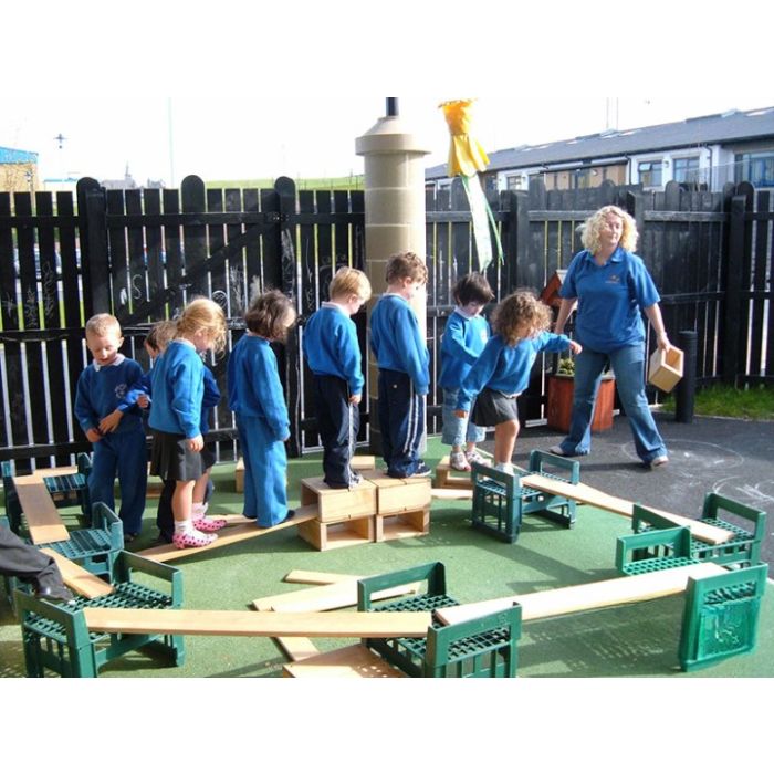 Let our Giant Balance Pack encourage children to put their balance skills to the test while adding adventure and agility to outdoor play areas. This pack comes with 18 sturdy decking lengths, providing children with the words necessary to build custom-designed balance courses and providing them with inspiration to stretch, step, jiggle and wobble more as they go.