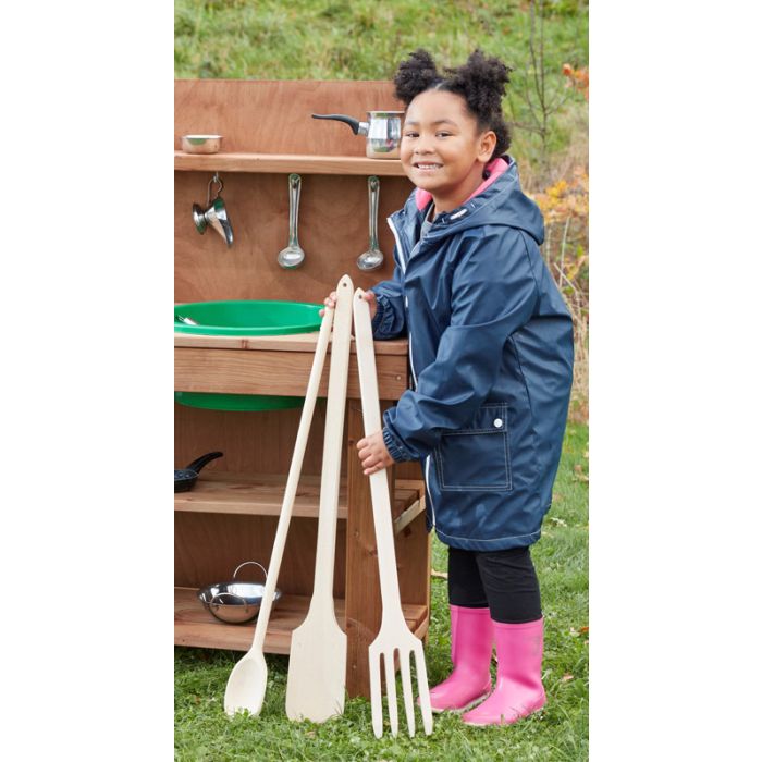 The Giant Mud Pie Tools are oversized wonders that will become the greatest addition to your outdoor play area or, offering big fun, big creativity, and big learning opportunities!