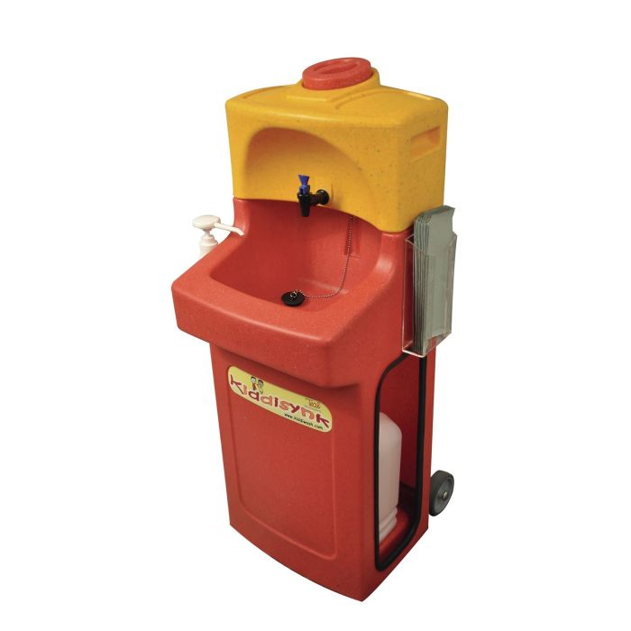 Portable sink to encourage good hygiene in your outdoor environment. Features a unique flip tap that can be turned on and off with just one finger. One tank holds up to 8 litres of fresh water, while waste water is collected in a separate 10 litre container. Size: H980mm x W370mm x D470mm.