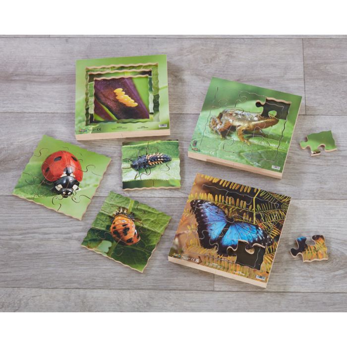 These beautiful frog, ladybird and butterfly images show the lifecycle of each minibeast. Three layers with differing difficulty of each layer. 3yrs+.