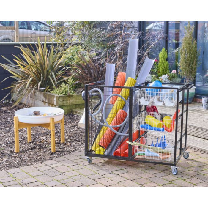 This storage trolley includes one large basket and six mesh drawers ideal for a variety of items.