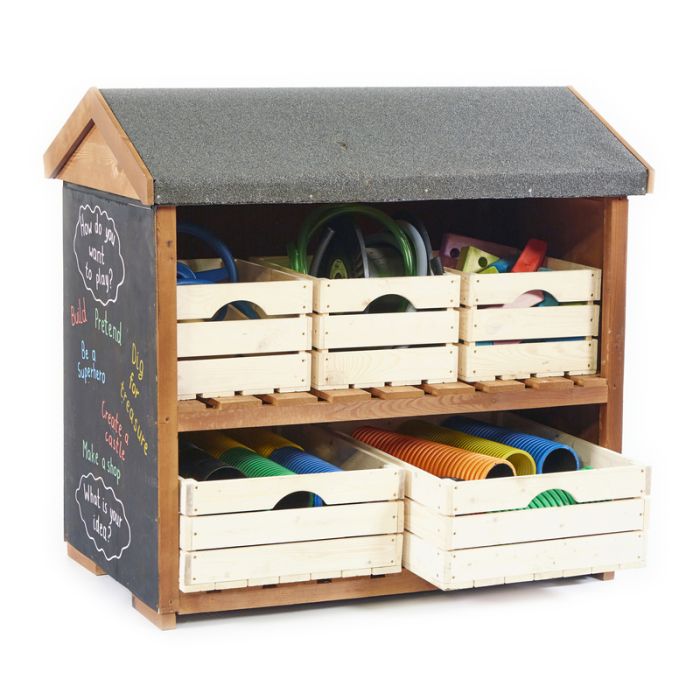 Promotes Organisation: Helps keep the outdoor area tidy and resources easily accessible, reducing clutter and chaos, and creating a more organised learning environment.
