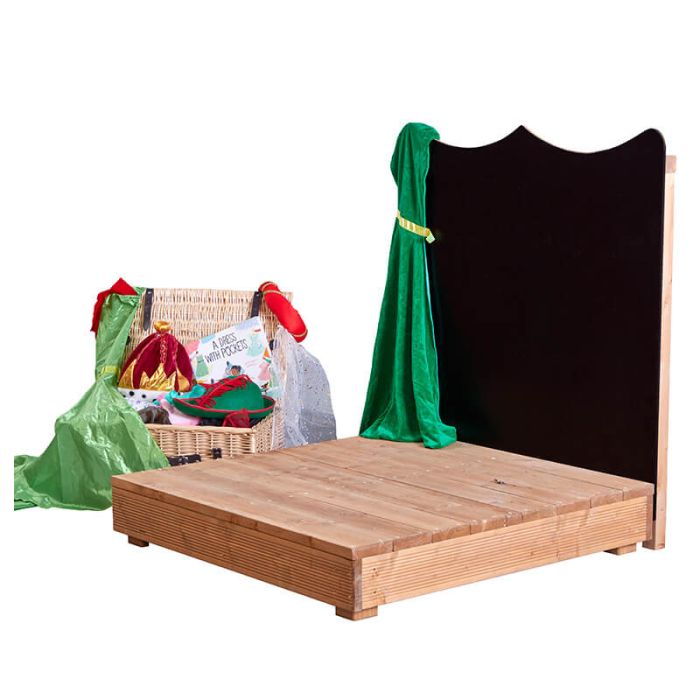 Mark Making Backdrop: Features a large, blank backdrop perfect for drawing, writing, or creating visual stories, enhancing the stage experience with a customisable touch.