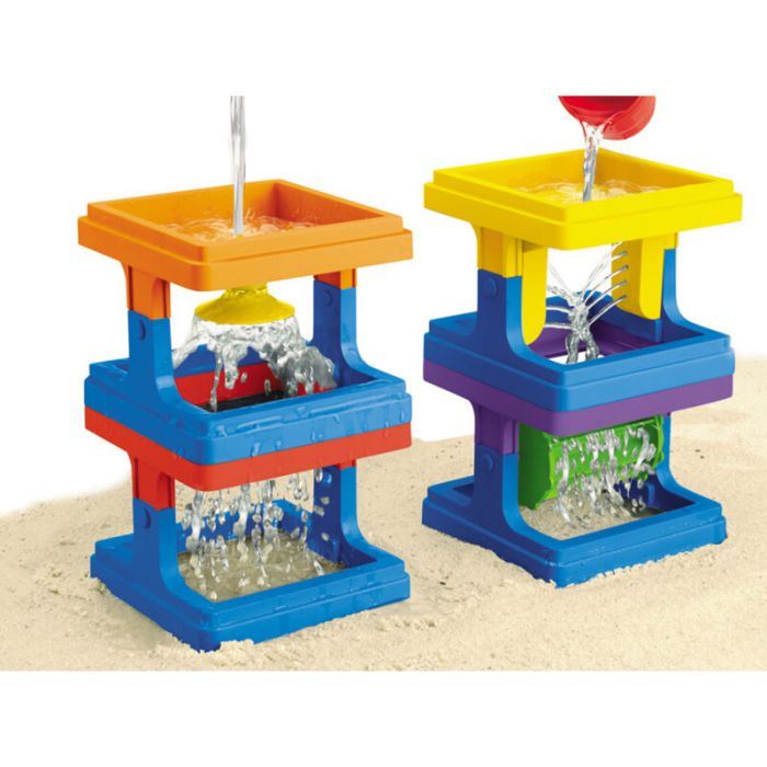 Children can design their own water system before scooping, pouring, measuring and pumping water while developing important motor skills and learning measurement, counting, experimentation, creativity, social skills, team work and observation through interesting and fun activities with water.