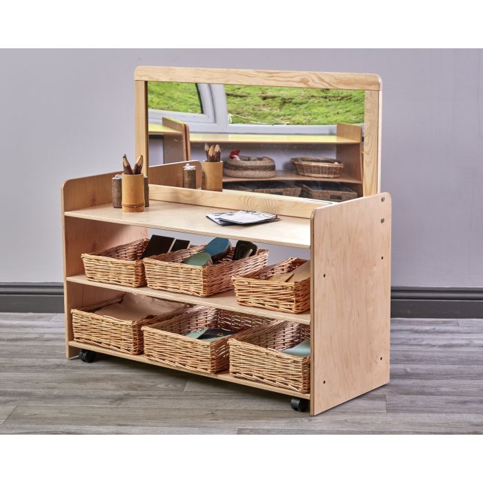 With two shelves offering ample space, this unit allows you to store a range of resources from full of sensory materials, art supplies, or even loose parts for open-ended play.