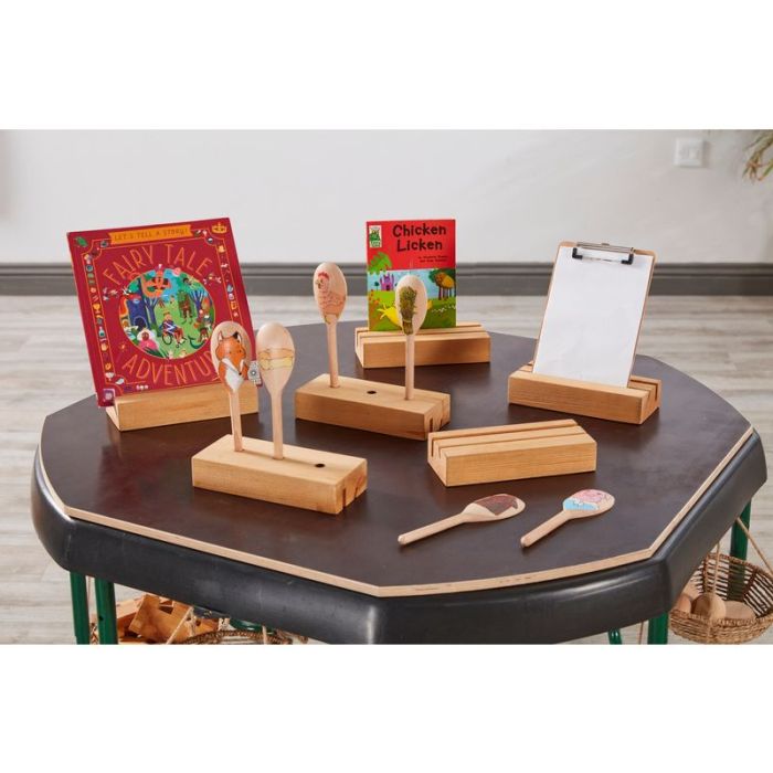 These sturdy wooden stands are versatile, seamlessly integrating into educational activities.