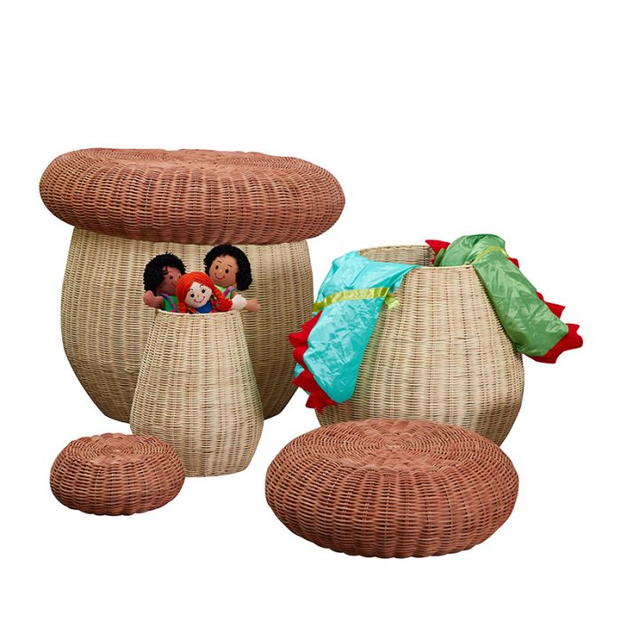Unique mushroom shape: By creating our baskets to look like mushrooms, they encourage children to take responsibility for tidying away in a fun manner, whilst also being incorporated into role play.
