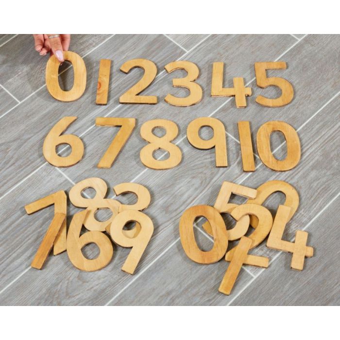 Our wooden maths numbers are a great way to enhance other forms of provision like small world tuff trays or in your role play area.