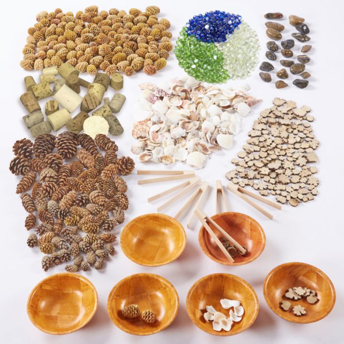 Bowls for Sorting and Displaying: Beautiful, rustic wooden bowls are included to hold sorted treasures, making them easy to set up for activities.