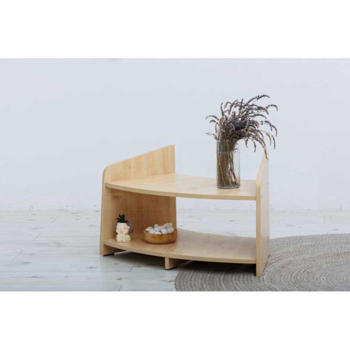 With its unique curved design and sleek wooden construction, this shelving unit is as functional as it is aesthetically pleasing, providing educators with a practical solution for organising and displaying materials in a visually appealing manner.