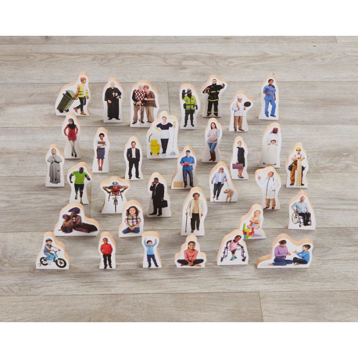 33 wonderful depictions of key vocational and community figures that represent the rich diversity around us. Includes a variety of age, gender and multicultural representations that reflect our resplendent culture. 3yrs+. H 6.5-1.5cm.