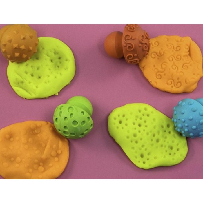 Add something different to your doughplay with this set of stampers. Will help improve fine motor skills. The easy grip handle, designed to fit comfortably into the palm of the hand. Four assorted designs. Made from soft, durable silicon. Pack of 4. Rec. 3+. Supervision recommended.