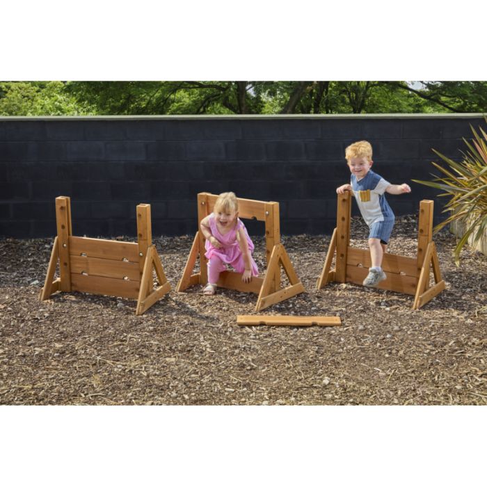 Climbing Fun: A set of sturdy wooden clambering walls perfect for crawling, climbing, and exploring.