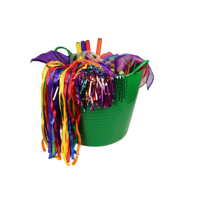 Inside you'll find a mix of engaging equipment: rainbow wands, scarves, dance rings, pom poms and rhythm flags - plus 12 handy foot markers for spatial awareness and structured movement activities.
