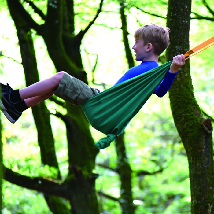 Once set up between two strong trees, it provides a fun swing or a place for children to sit. Made from sustainable fabric. 5yrs+.