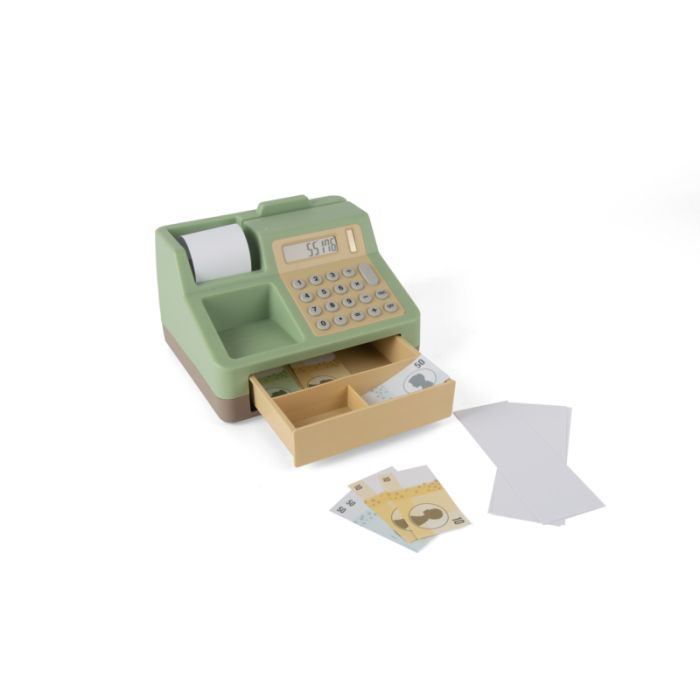 Turn play into learning with this smart cash register equipped with a solar-powered calculator: with no need for battery replacement.