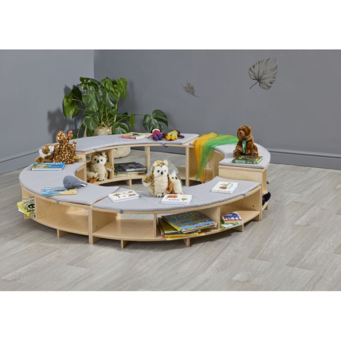 With dimensions ranging from H22cm to H31cm in height and a generous diameter of 174cm when places in a circular set up, these benches are perfect for group reading sessions, quiet reflection, or collaborative activities.
