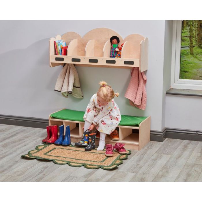 Now your little learners can sit down comfortably to put on shoes or boots before heading outdoors, and there's even extra storage space underneath the bench for those must-have items.