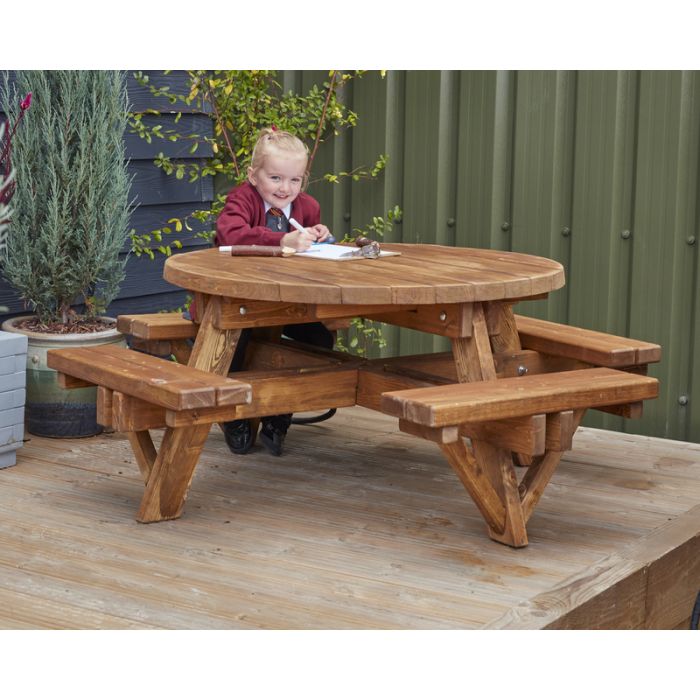 The Round Picnic Bench For 8 is a fantastic way to bring young minds together for fun, learning, creativity, and a whole lot of laughter!