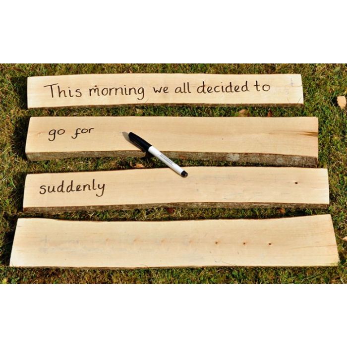 Set of 4 wipe-clean half logs: Durable wooden pieces designed for outdoor or indoor use, offering versatility for writing practice, sentence sequencing, and literacy in early years foundation stage settings.