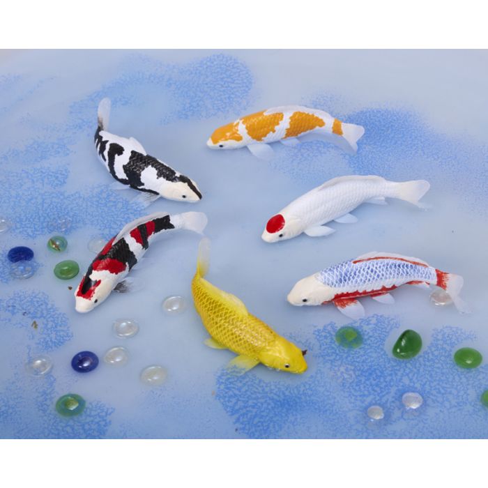 Why settle for cardboard cut-outs of fish when you can have these six shimmering koi carp swimming through your small world play?
