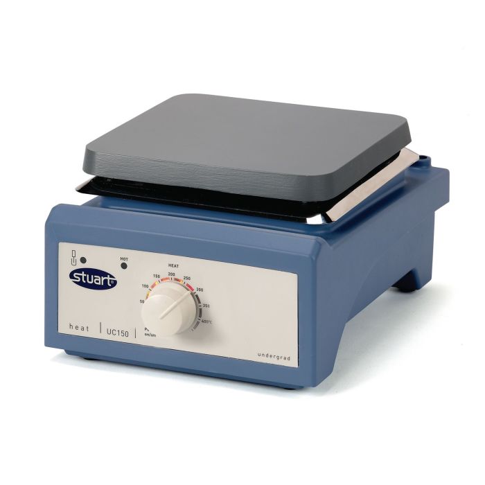Model US150 has a robust aluminium/silicon alloy top plate for excellent heat transmission. The top plate has a thin ceramic coating for added chemical resistance. A 700W element gives rapid heating and ensures even temperature distribution across the whole surface of the plate. The hot plate has microprocessor control and an innovative LED based true °C temperature setting system rather than simply a 1 to 10 arbitrary scale.