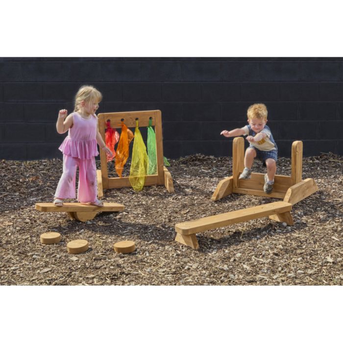 A perfectly sized balance beam, three stepping stones, a seesaw plank, a climb through, and a sturdy hurdle, all working together to give your toddlers the adventure of a lifetime!