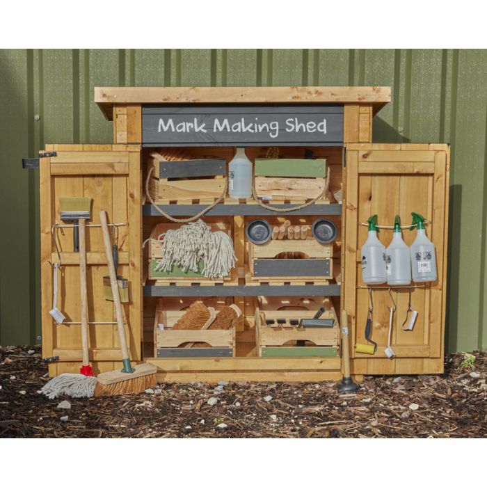 Standing at a comfortable height of 124cm, this spacious storage shed is ideal for younger children to access and choose their mark-making resources.