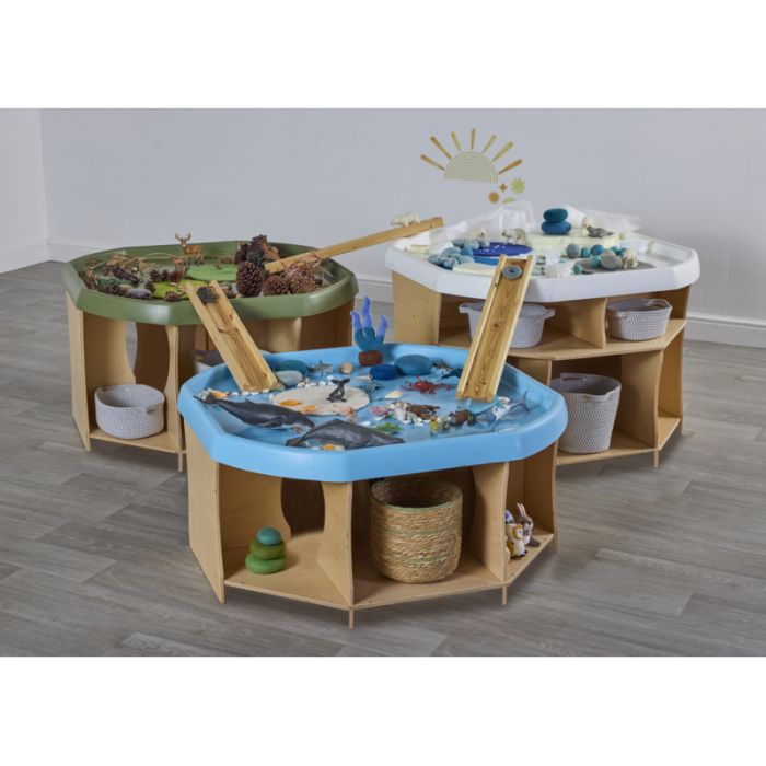 The wide surface accommodates our tuff spot trays, giving children plenty of room to create miniature worlds, splash through sensory play or stage their latest construction masterpiece.